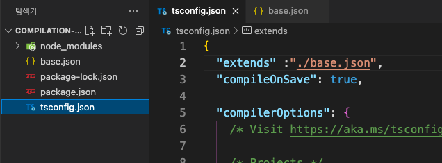 상속할때 사용하는 키워드인데, tsconfig도 다른 파일을 상속 받을 수 있다.