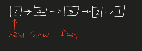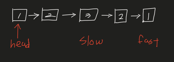 slow, fast를 head와 동일한 위치에 두고 slow는 한칸씩, fast는 두칸씩 전진하는 기법이다. (linked list에 다음 저장값을 가리키는 next가 있기 때문에 가능한 전략인것 같다.)