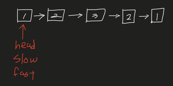1) 처음에는 아래와 같이 slow = fast = head로 같은 위치에 있다.
